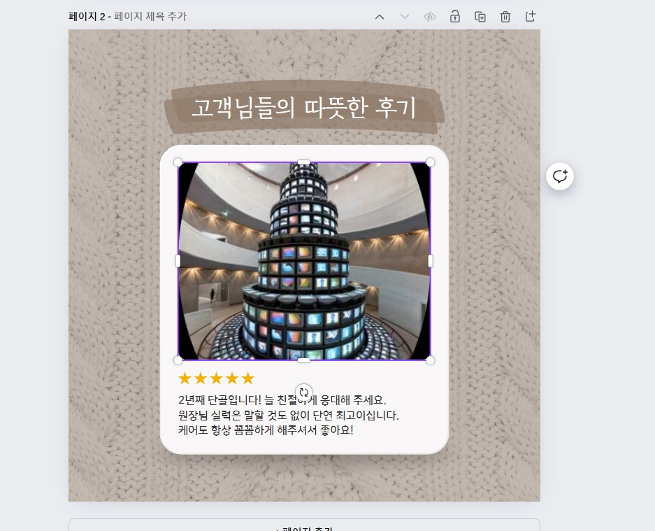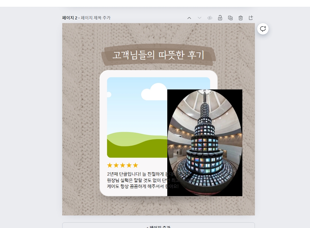 - 레이어 관리: 디자인 요소의 순서를 변경하여 앞뒤로 배치할 수 있습니다.