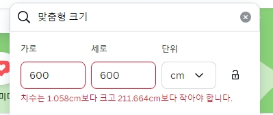 - 빈 캔버스 선택시 최소 치수는 1.058cm이며 최대 치수는 211.664cm입니다. 이 이상의 실물 인쇄를 하려고 하실 경우 가로세로 적당한 비율로 디자인하고 PDF파일로 다운받아 인쇄를 하시길 추천드립니다.